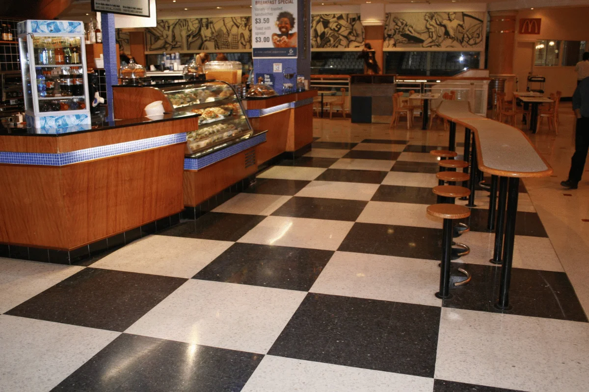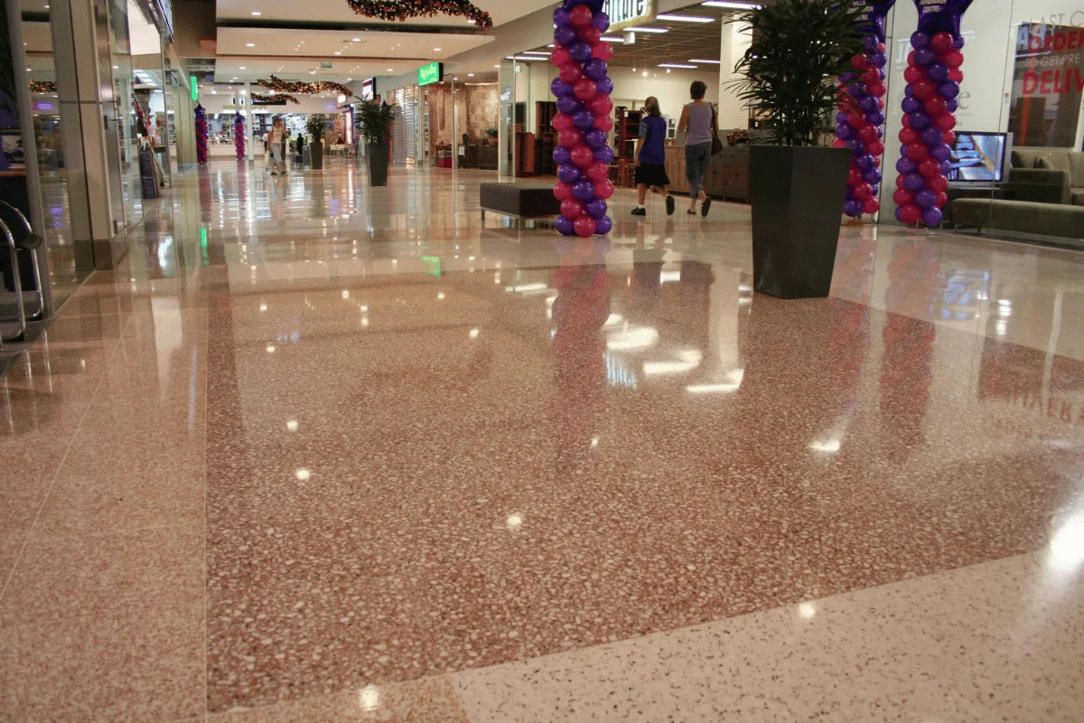 This is the traditional terrazzo finish seen in shops and houses throughout Venice, the birthplace of terrazzo.